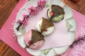 Mochis: Dulces japoneses hechos de arroz glutinoso, textura elástica, rellenos normalmente de anko (judía roja) o helado.